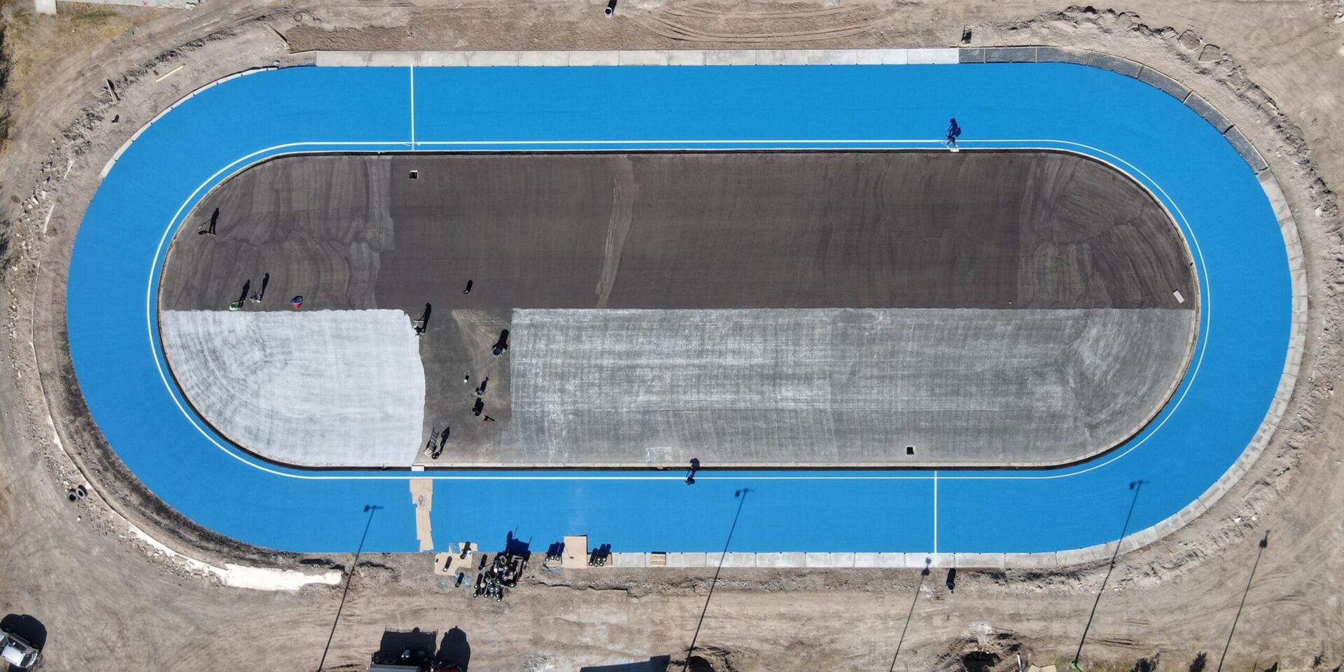 La nueva pista se construyó remodelando la pista de patín existente; se realizó una nueva base de hormigón asfaltico conservando los peraltes de las curvas.